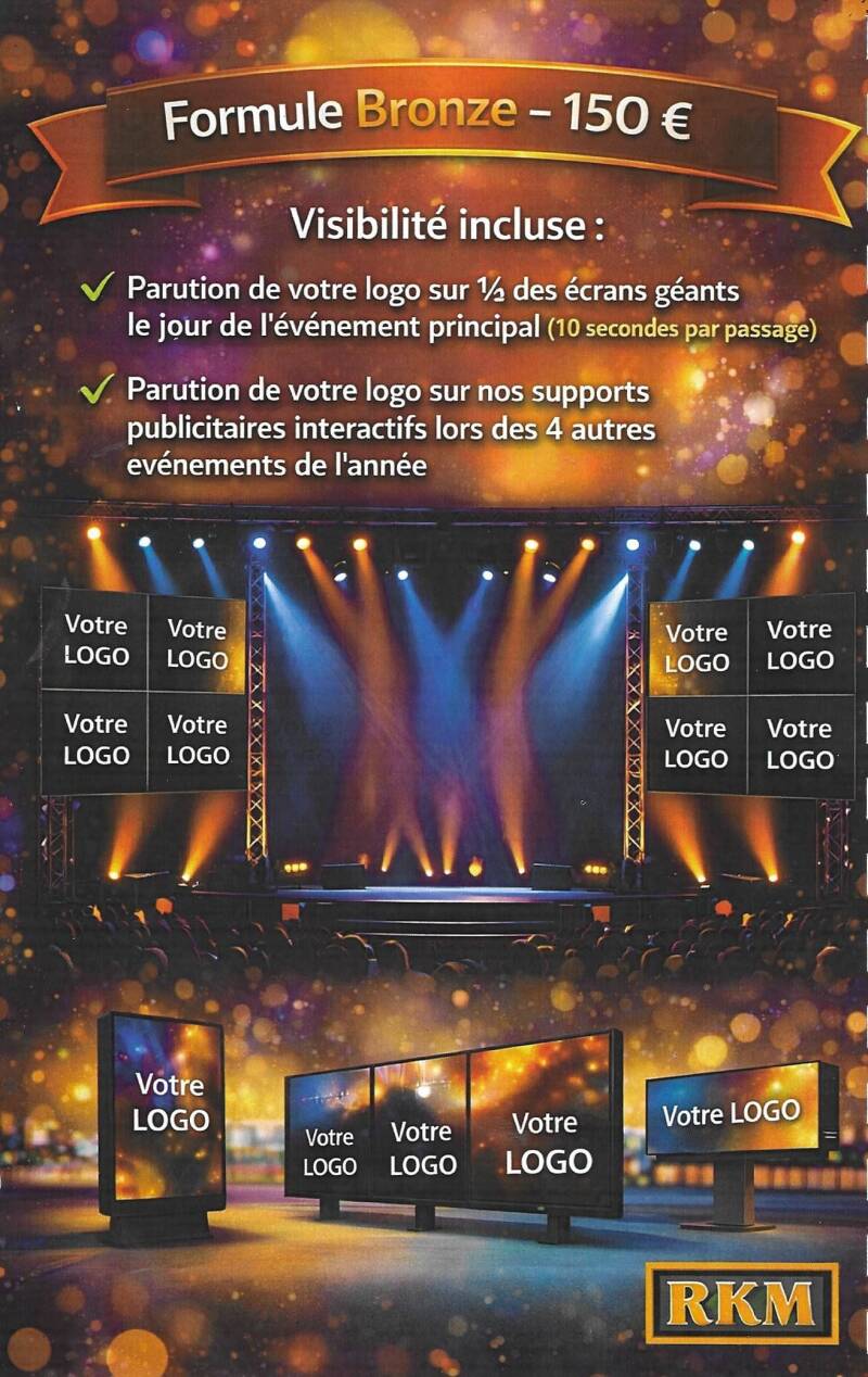 Accédez à une visibilité accrue sur l'ensemble de nos 5 événements annuels et sur le site RKM Évènements toute l'année.