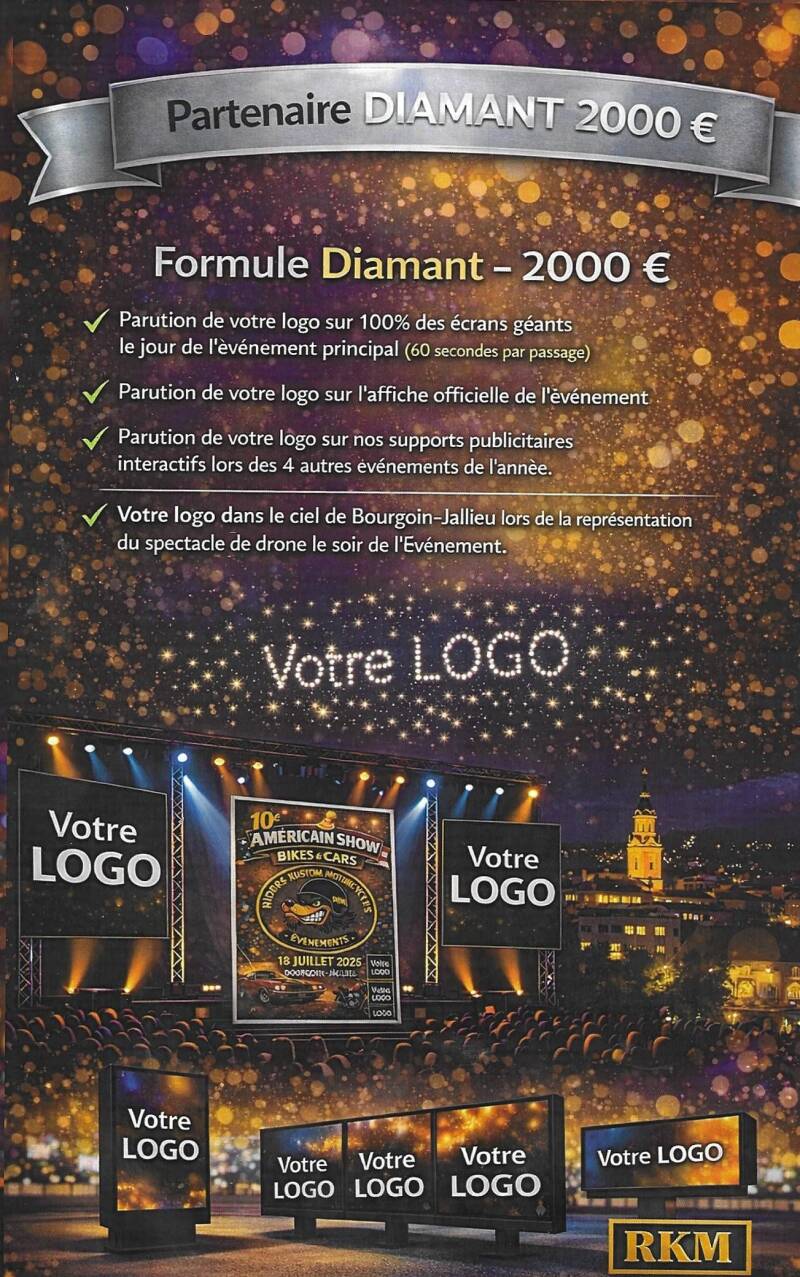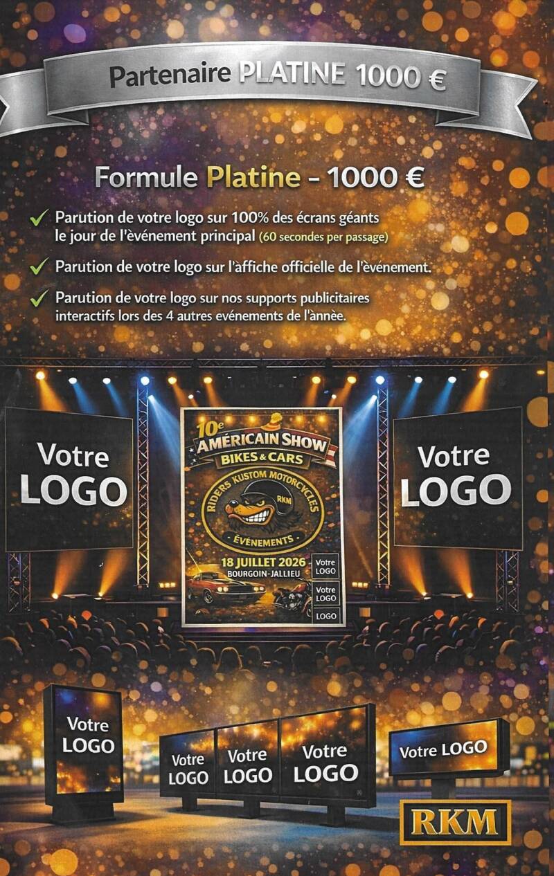 L'American Show 2026 vous offre une plateforme unique pour rayonner. Profitez d'une visibilité continue sur nos 5 événements majeurs annuels et sur notre site web RKM Évènements, atteignant ainsi un public passionné et engagé.